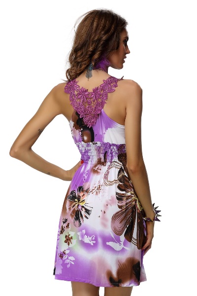 Letní šaty kratšího střihu délky přibližně po kolena se zajímavým detailem ramínek vyrobených z krajky. Lehký, chladivý materiál, který není průhledný, ale přitom je dostatečně vzdušný na to, abyste se v těchto šatech cítila příjemně i v horkých letních dnech. V oblasti dekoltu je látka dvojitá, pas je žabičkový- celý střih šatů je velmi pružný a přizpůsobivý, takže je doporučujeme pro postavy S až L. Příjemné letní šaty, který využijete při spoustě příležitostí- ať už jako plážové šaty na Vaší dovolené u moře, ale například i na letní svatbu, nebo jinou venkovní oslavu.